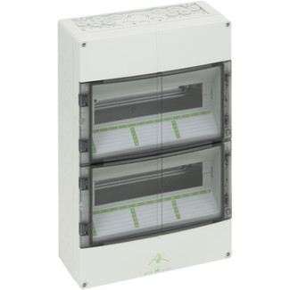 Distribution board, 2 row, 28 modules, 150 mm rail spacing, screwless PE/N terminal rails each with 6 screwable clamping points, 2.5 - 16 mm², 21 / 2 x 14 screwless clamping points 1.5 mm² - 4 mm², elastic entries on top, with cable covering, masking and labelling strips, additional double-membrane seals and other accessories