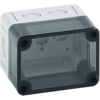 Empty enclosure, base: polystyrene, grey, similar to RAL 7035, cover: polycarbonate, transparent